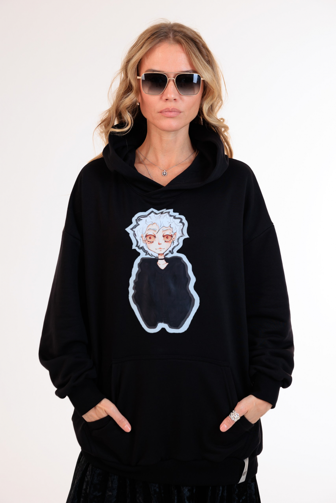В наличии имеются худи оверсайз размеров L и XL.